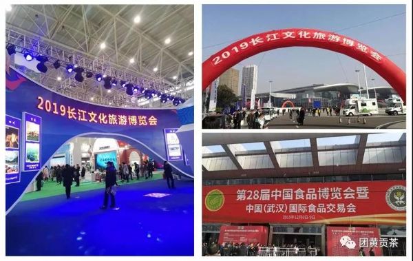 在武漢國際博覽中心,A館舉行2019長江文化旅游博覽會,B館舉行第28屆中國食品博覽會暨中國(武漢)國際食品交易會。團黃貢茶是英山云霧茶品牌企業(yè)、湖北省非物質文化遺產傳承企業(yè),作為英山本地茶葉企業(yè)代表、茶文旅融合發(fā)展代表性企業(yè)同時參與兩場展會。